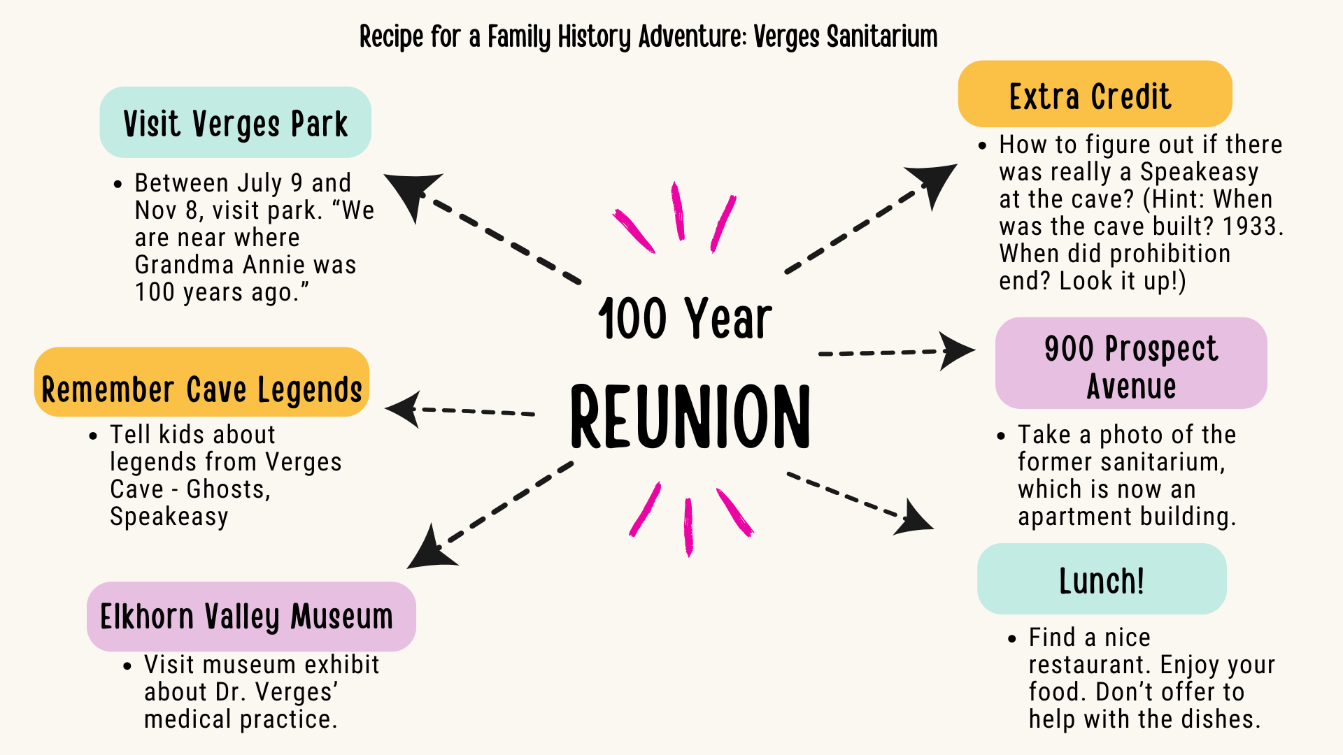 Maybe I could coax a whole group of cousins into a 100-year reunion. A family history adventure. Is that exciting, or just dumb? I think we could make it fun for kids.