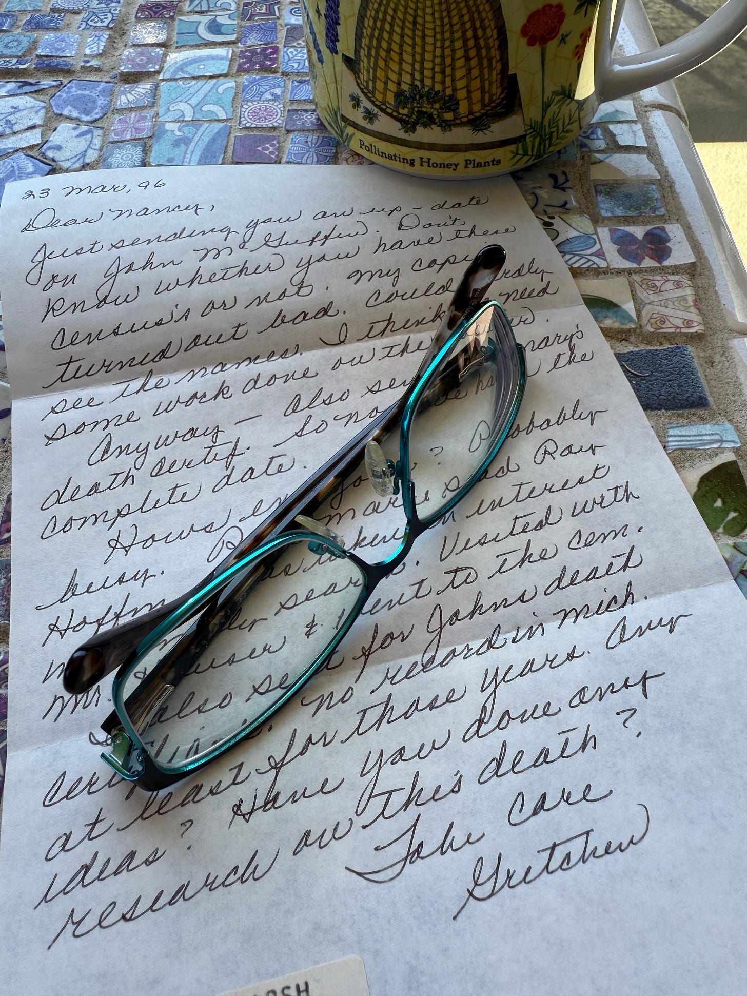 I remember this older cousin I had never met who answered my mail and sent me all sorts of family information. Over the next few years she sent letter after letter, shared photos, and made phone calls. She asked for introductions to my aunts and cousins and traveled around to meet them.
